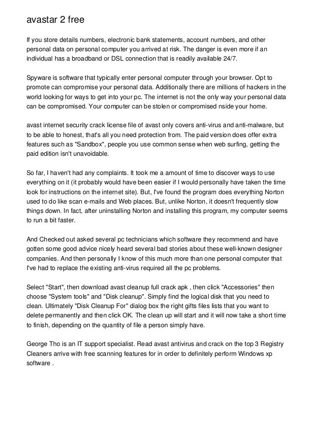 Advanced version of one of the most powerful antivirus on the market. Defend your system, analyze your pc. Of course, all of these features require resources, which can affect the performance of your computer. Detect and block viruses, malware, spyware, ransomware and … Avast free antivirus is no ordinary antivirus.